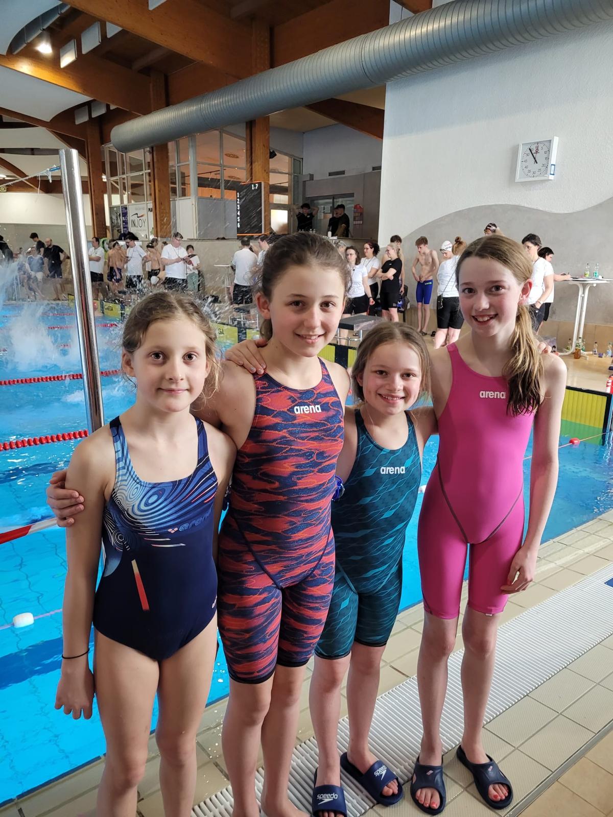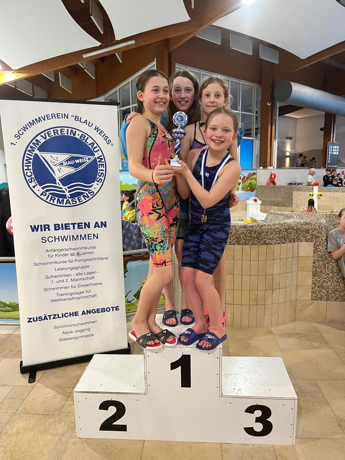 Carina Will (2016), Liese-Lotte Aulfinger (2014), Marie Deisroth (2015) und Sophia Marlene Berger (2014) gewannen die 4 x 50 Meter Lagenstaffel und sicherten sich damit den einzigen Pokal, der in den Besitz der Blau-Weißen ging.