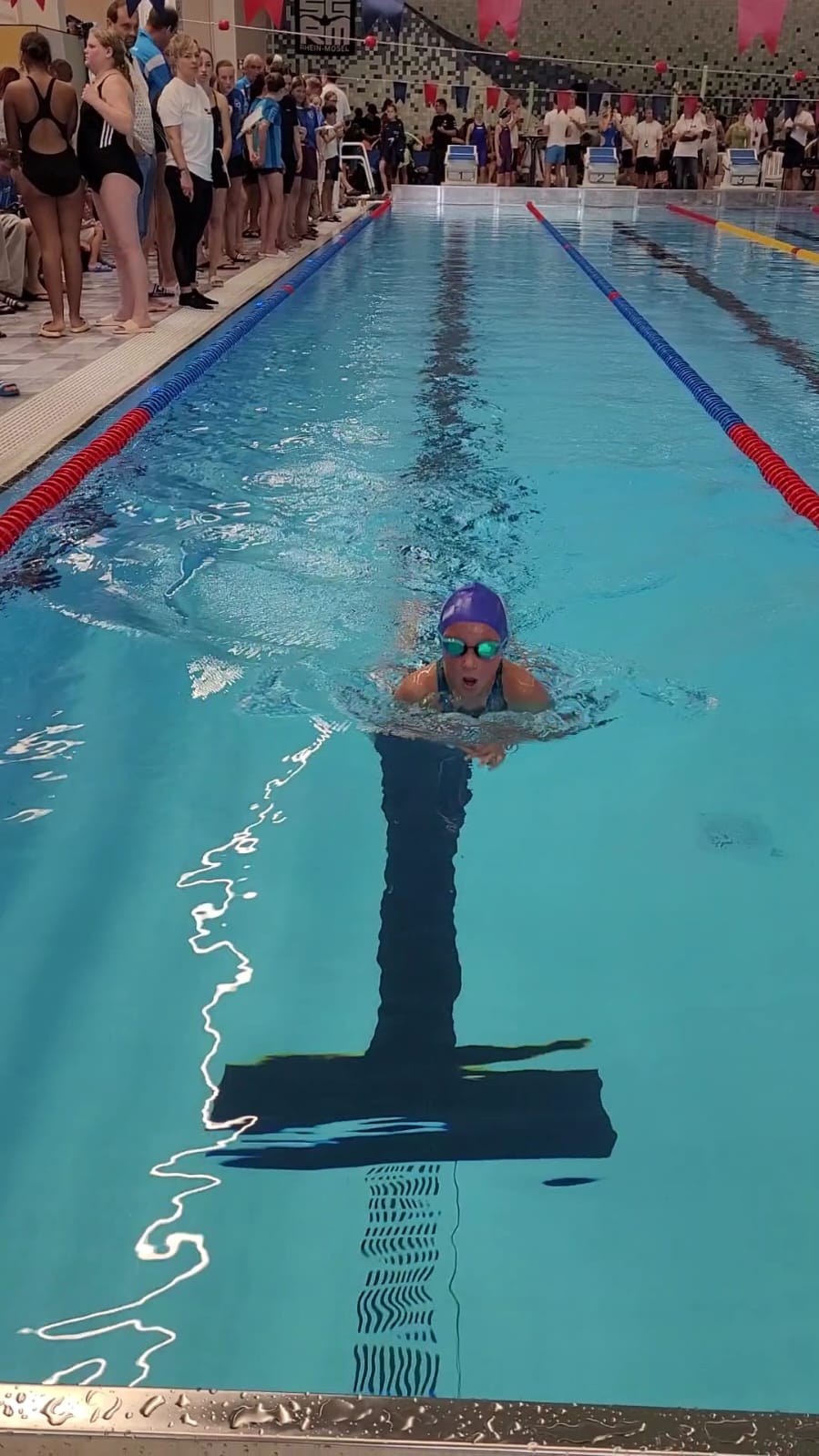 Zusammen konnten 17 Pirmasenser in Simmern am 14.09.25 bei 68 Starts 47 Podestplätze erschwimmen und landeten 19-mal ganz oben auf dem Treppchen. Beeindruckend an diesem Tag waren vor allem die Leistungssteigerungen von Leni Herrmann (Jahrgang 2010) über 100 und 200 Meter Brust (1:25,85 und 3:03,46 Minuten) und Emilie Seither (2009) über 100 Meter Freistil (1:08,73). Elena Baranva (2010) siegte mit persönlichen Bestzeiten über 50 und 200 Meter Brust (35,90 Sekunden und 2:54,41). Die achtjährige Stella Berger meisterte zum ersten Mal die 100- Meter- Lagenstrecke in 1:58,54 Minuten und freute sich insgesamt über vier Goldmedaillen. Leni, Emilie, Elena und Stella qualifizierten sich mit diesen starken Zeiten für SWSV- Kurzbahnmeisterschaften und haben alle vier die Normen bereits für mehrere Strecken erfüllt. Weitere erste Plätze erreichten Laurenz Aulfinger (2016), Liese-Lotte Aulfinger (2014), Jonas Bäsel (2011), Sophia Marlene Berger (2014), Marie Deisroth (2015), Ben Mang (2016), Liv Mann (2015), Sophie Maurer (2016) und Lukas Volz (2015).
